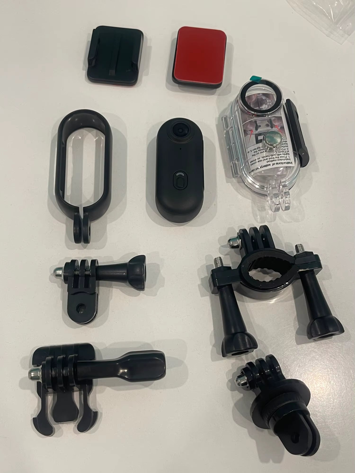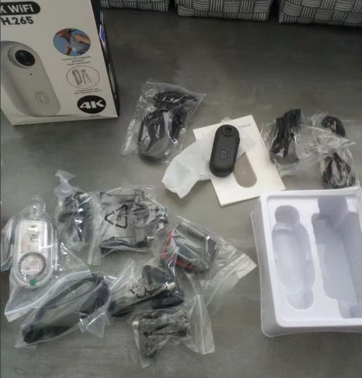 Chaque commande inclut la CamPro 4K, un câble de chargement, une notice, et plusieurs accessoires de fixation offerts